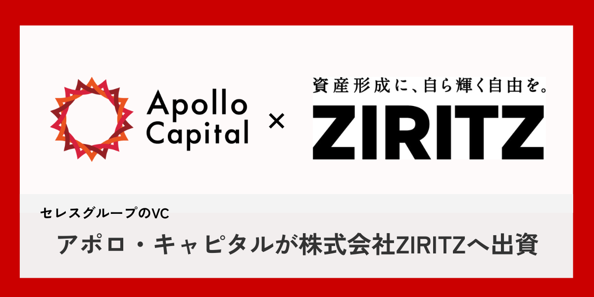 当社の連結子会社である株式会社アポロ・キャピタル(本社:東京都渋谷区、代表取締役社長:都木 聡、以下アポロ・キャピタル)は、資産形成プラットフォーム「StockFormer」およびAIを活用した新築アパート自動プランニングサービス「StockFormer-ZERO」を展開する株式会社ZIRITZ(本社:東京都千代田区、代表取締役:島﨑 怜平、以下ZIRITZ)に対して出資を実施しましたことをお知らせいたします。