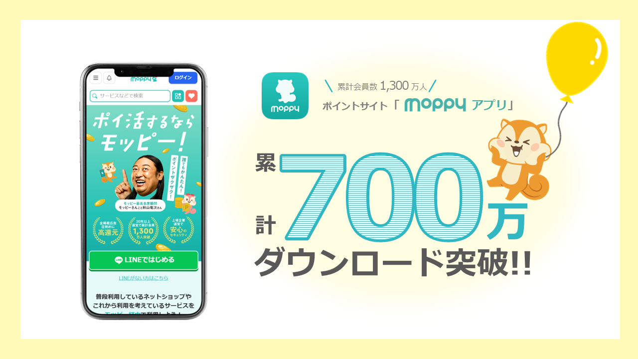 当社が運営するポイントサイト「モッピー」のスマーフォン版アプリにおいて、2026年2月17日に700万ダウンロードを突破したことをお知らせいたします。