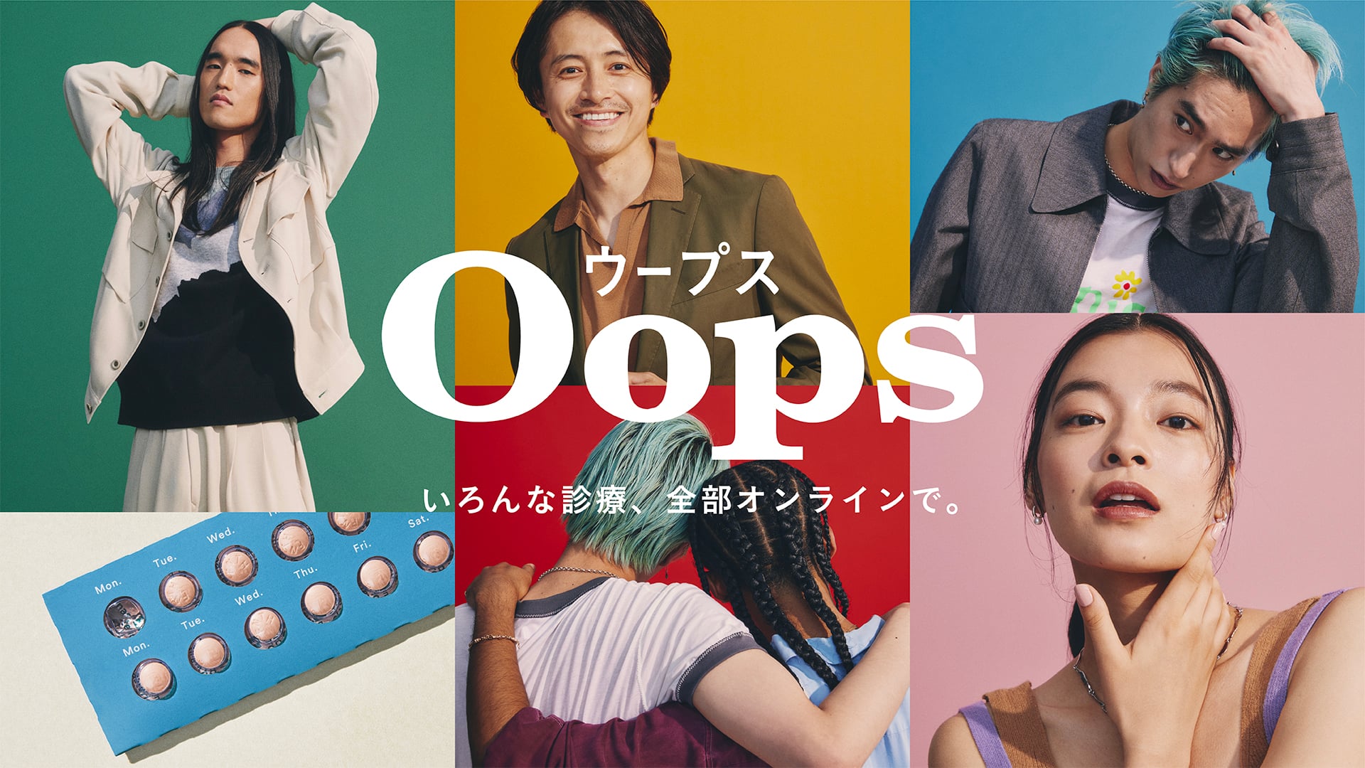 「Oops(ウープス)」は、医師の診療からお薬の処方までオンライン上で完結できるオンライン診療サービスです。現在、AGA(男性型脱毛症)診療を行う「Oops HAIR」及びED(勃起不全)診療を行う「Oops LOVE」、婦人科系の診療を行う「Oops WOMB」、メンタルヘルス系の診療を行う「Oops HEART」を展開しており、10万人※2の会員基盤に成長しております。
